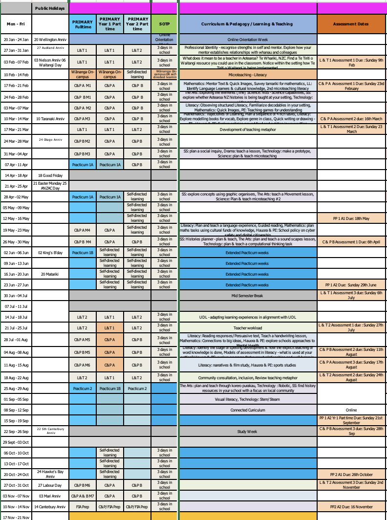 At the heart of this programme is the right for all to flourish. Te Tiriti o Waitangi is the waka that carries us on our learning and teaching journey. This programme reflects the dynamic, complex and responsive nature of learning and teaching and fosters connectedness, courage, curiosity and creativity. Graduates will have an emergent sense of identity and efficacy to respond with care and aroha in all their interactions.